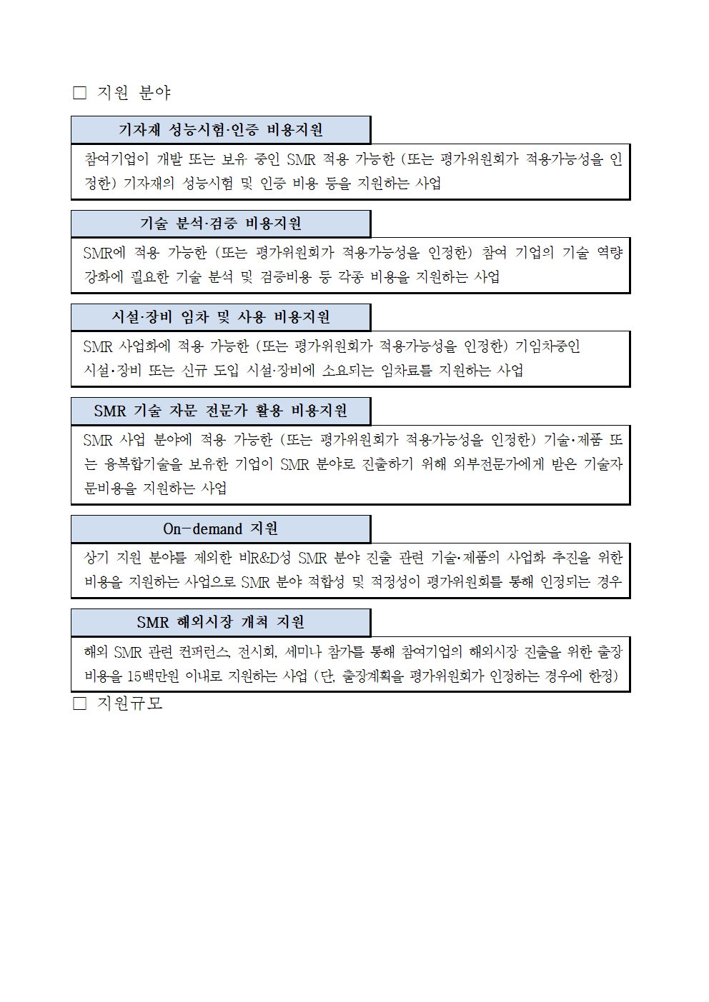 SMR 기반조성 지원