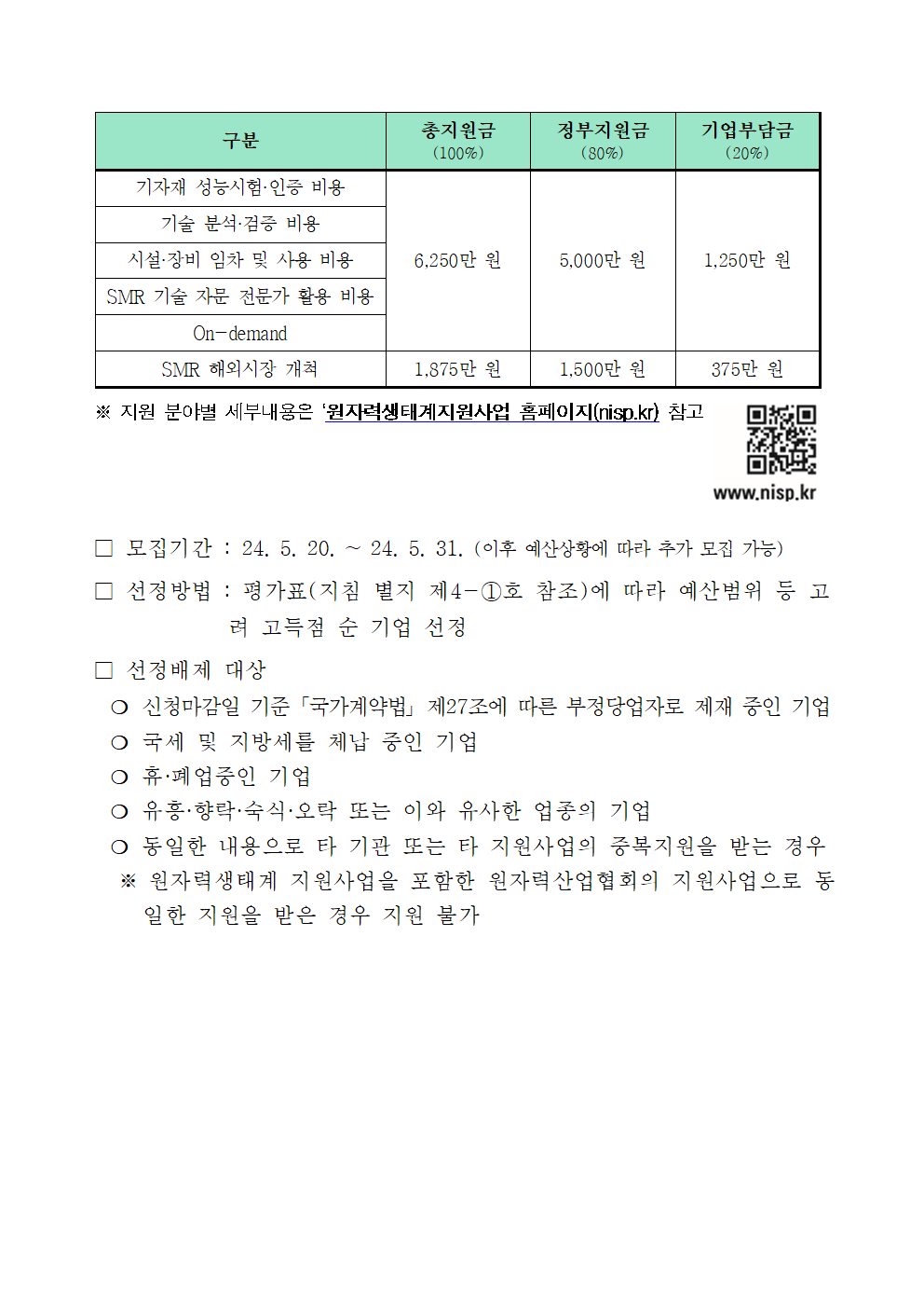(붙임1) 2024 SMR 산업생태계 기반조성 지원사업 공고문 (5차).pdf
