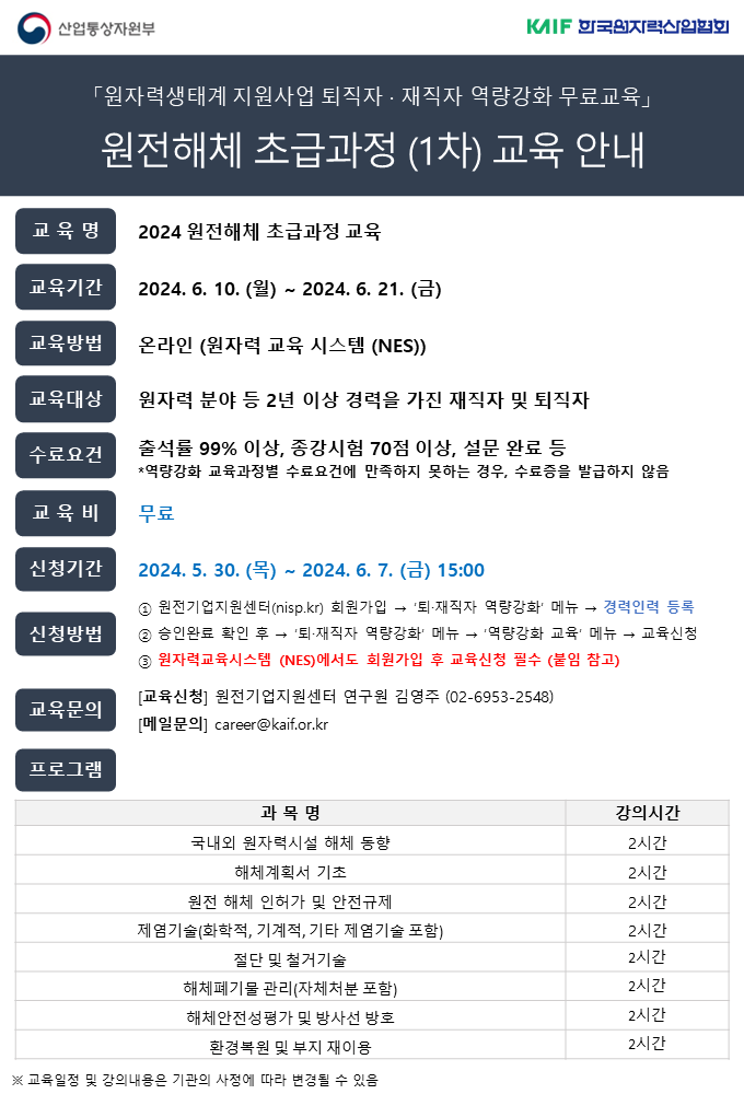 2024 원전해체 초급과정 온라인 교육 (1차) 교육생 모집 (마감)